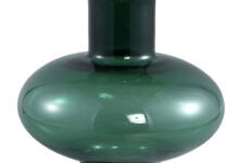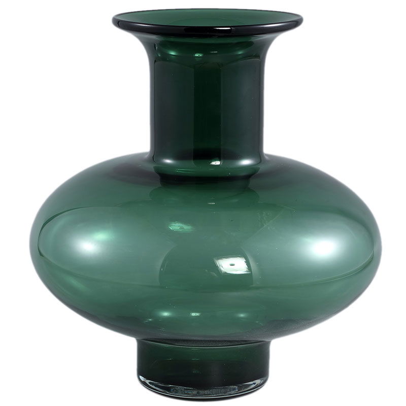 NORY brede decoratieve glazen vaas bolvaas met smalle hals groen 35cm