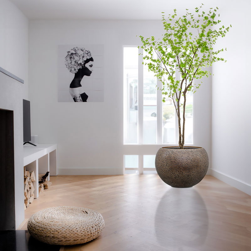 OPUS grote ronde plantenbak bloempot brons metallic voor binnen 60cm breed