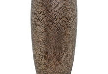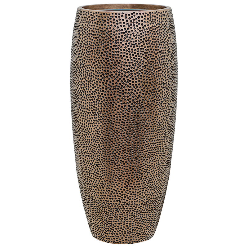 Hoge vaas met een speels aangebracht design in het brons met metallic finish. Van hoogwaardig en oersterk polystone.