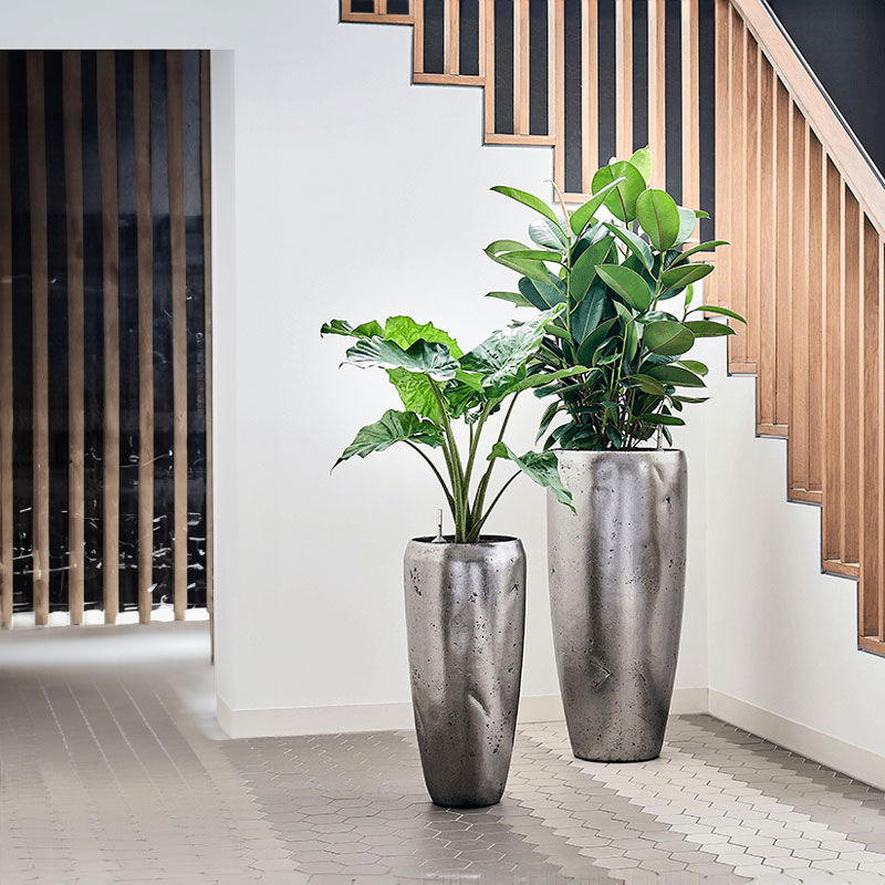 OPUS XL zilver grijze grote bloempot design vaas voor binnen 105cm