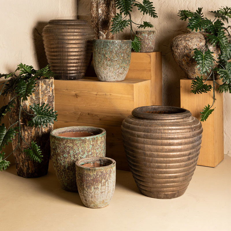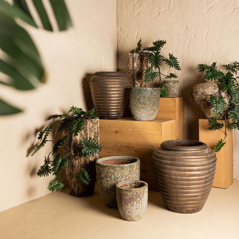 Bijna al onze potterie handgemaakt en daarom uniek in patroon, kleuring en niet 100% waterdicht. Een binnenvaas is ideaal om duurzaam te genieten van alle indoor geplaatste potterie. En om eenvoudig te wisselen van inhoud en styling.