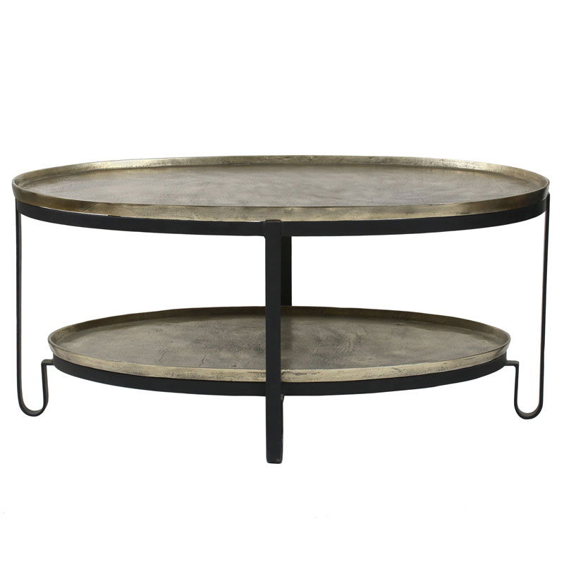 RIVAA ovale salontafel bijzettafel goud metaal met zwart 97cm breed