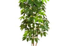 Prachtige en extra hoge Schlefflera Amate met echte houten stammen, één van de favorieten in ons assortiment. Niet van echt te onderscheiden high quality kunstplant. De charme van een grote kamerplant zonder de zorgen.