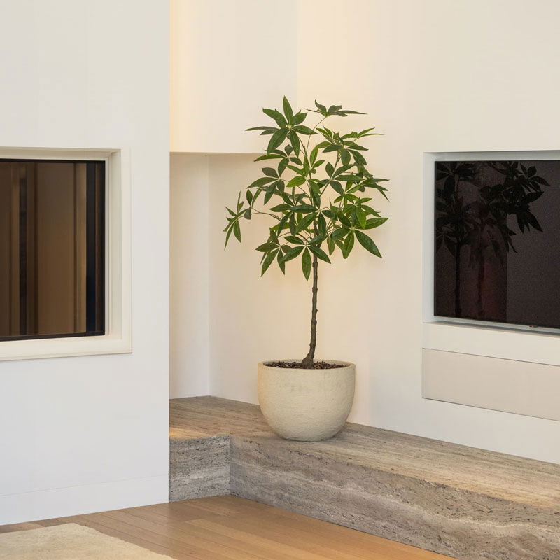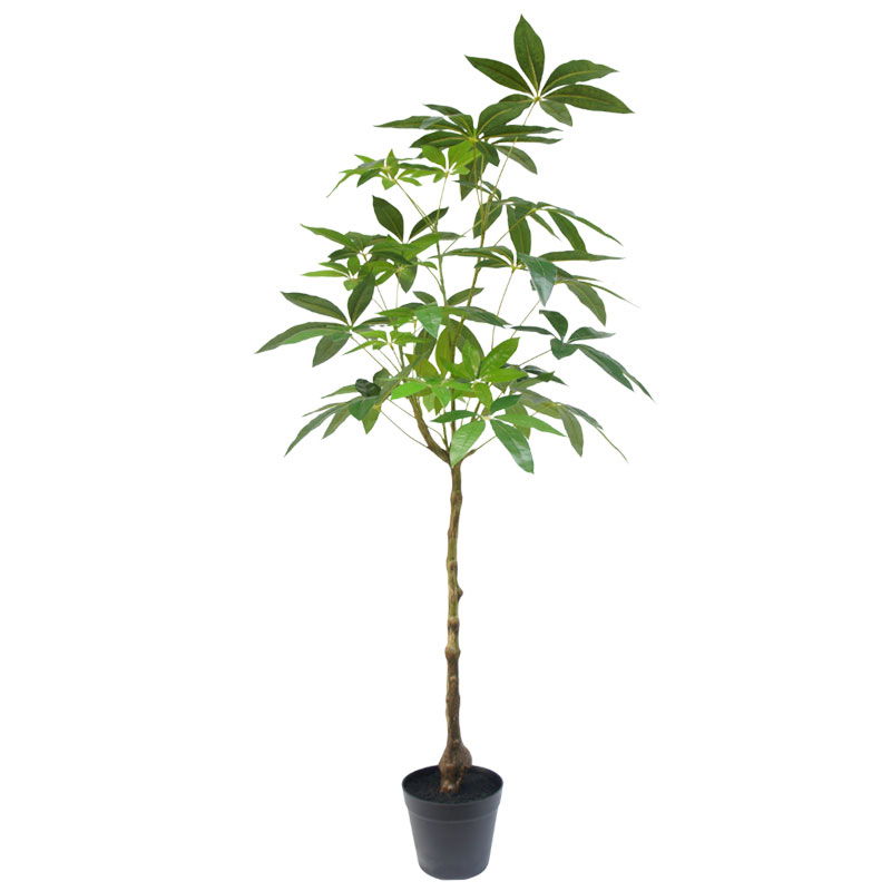 Prachtige Schefflera op stam. Verfijnd en stijlvol voor een speelse en luxe uitstraling. Niet van echt te onderscheiden high quality kunstboom met levensechte bladeren en realistische details. De charme van een grote kamerplant zonder de zorgen.