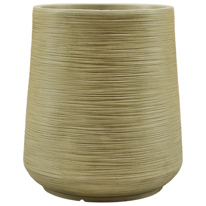 Fijne natuurlijke serie in zachte kleur met gestreept d3 patroon in zachte vormen. Elk stuk is handgemaakt van hoogwaardig brandvertragende fiberclay en UV-proof om lang te genieten van de kleur zowel indoor als outdoor. Een pareltje voor in je huis of tuin.