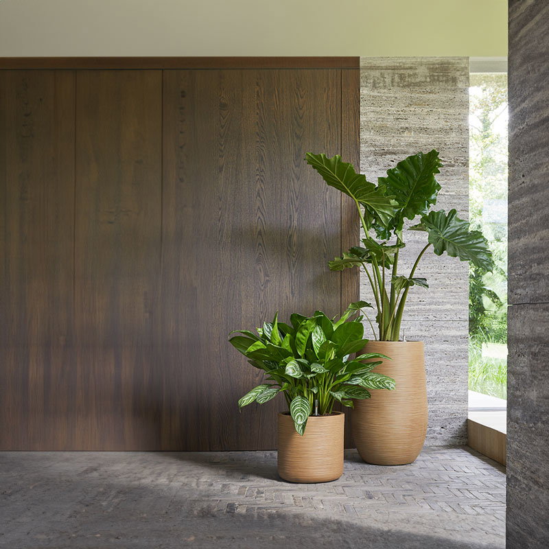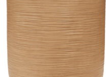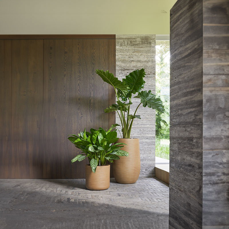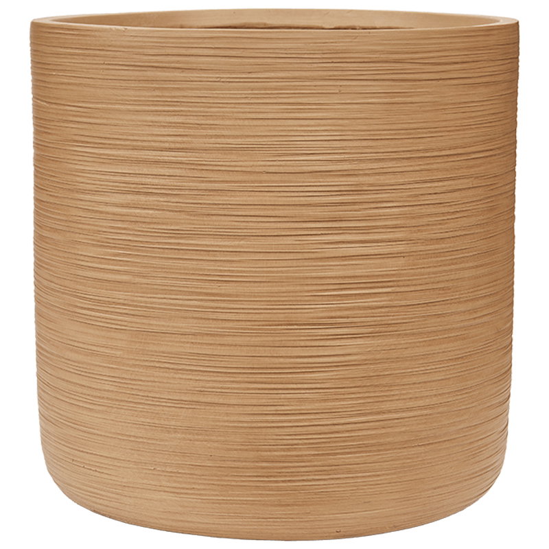 Fijne natuurlijke serie in zachte kleur met gestreept d3 patroon in zachte vormen. Elk stuk is handgemaakt van hoogwaardig brandvertragende fiberclay en UV-proof om lang te genieten van de kleur zowel indoor als outdoor. Een pareltje voor in je huis of tuin.