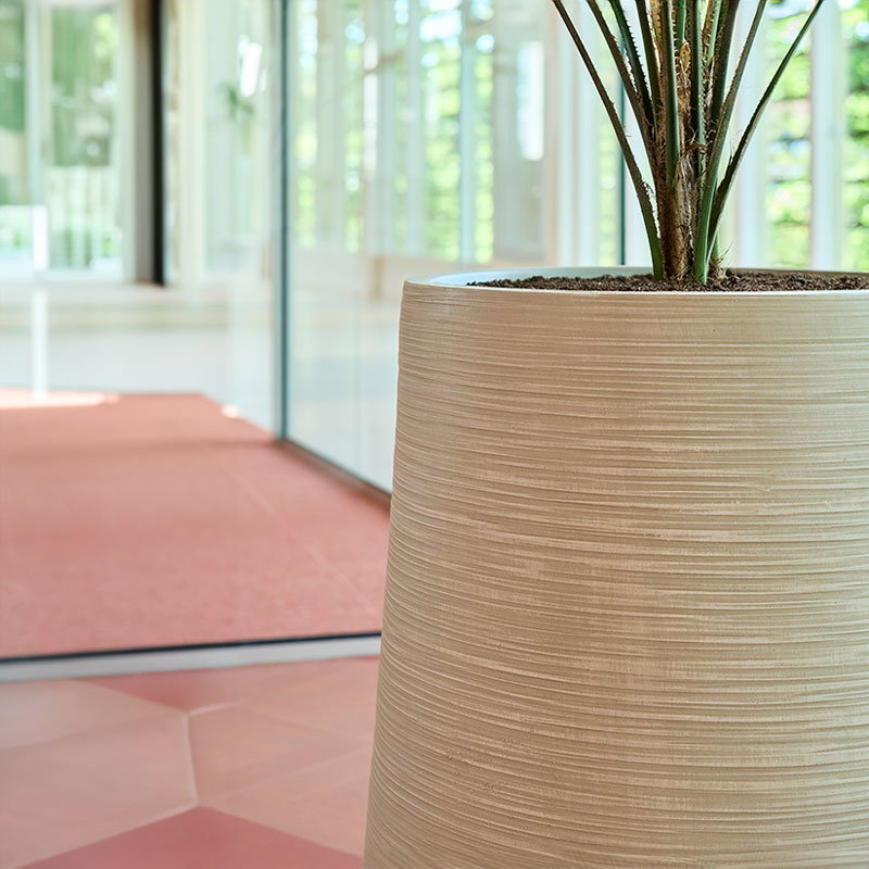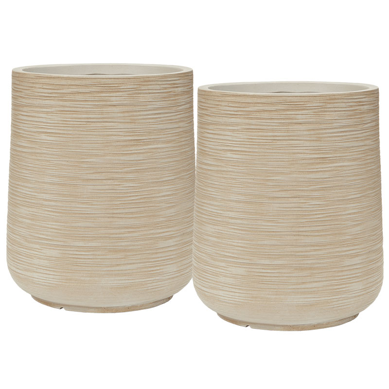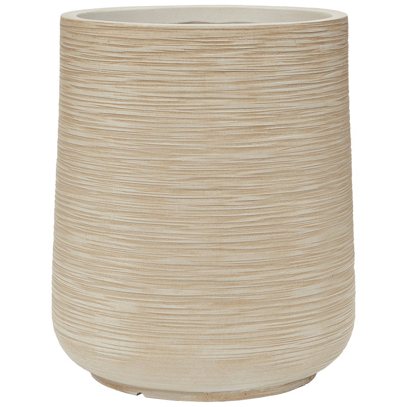 Fijne natuurlijke serie in zachte kleur met gestreept d3 patroon in zachte vormen. Elk stuk is handgemaakt van hoogwaardig brandvertragende fiberclay en UV-proof om lang te genieten van de kleur zowel indoor als outdoor. Een pareltje voor in je huis of tuin.