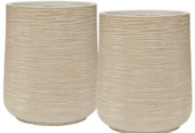 SELAA hoge bloempotten plantenpotten set beige wit voor binnen en buiten 44cm