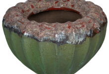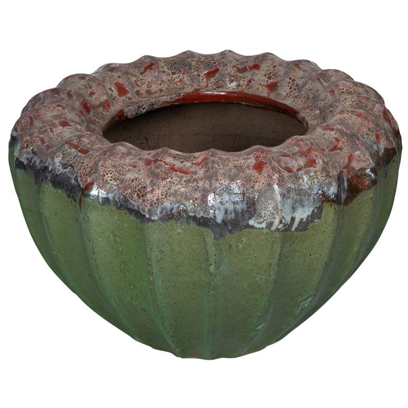 High quality brede bloempot met verticale belijning in prachtig groen keramiek. Deze bloempot is handgemaakt en in een speciale klimoven afgebakken, dat betekent dat elke pot uniek is en het eindresultaat afhangt van de plek in de oven. De prachtige glazuurlaag en de mooie vormgeving maken het een plaatje voor in je tuin of interieur.