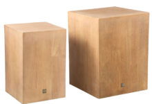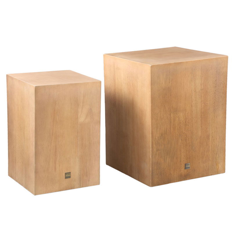 Robuuste set van twee lage kubus zuilen in licht eikenfineer. Strak design met prachtig natuurlijke nerven en noesten. Een verfijnde en veelzijdige look om je interieur mee te stylen. Geef je bloempotten de zichtbare en stralende plek die ze verdienen.