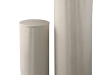 TAVII hoge zuilen set metalen plantentafels crème wit 65cm & 100cm