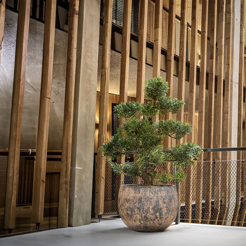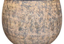 Prachtig ruwe aardse natuurlijke serie met gemeleerde stoere betonnen uitstraling in zachte vormen. Elk stuk is handgemaakt en volledig uniek in kleur en patroon van hoogwaardig fiberstone en UV-proof. Een pareltje voor in je tuin.