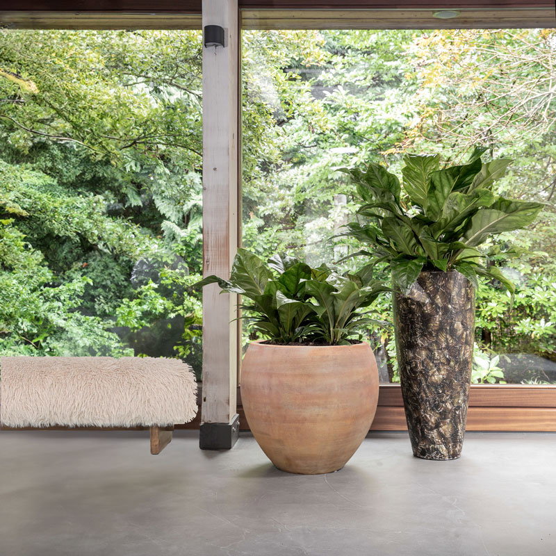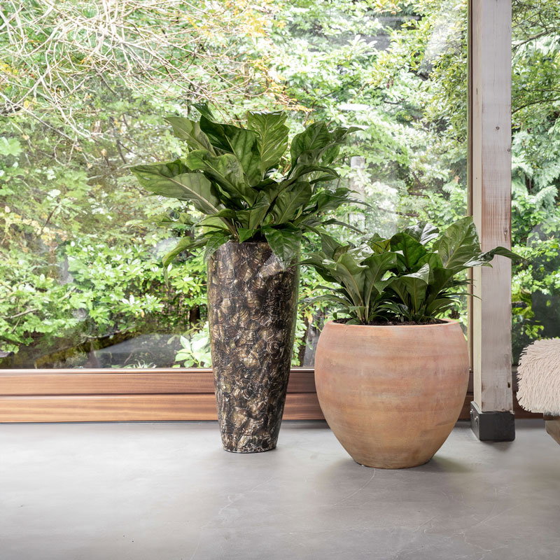 Bijna al onze potterie handgemaakt en daarom uniek in patroon, kleuring en niet 100% waterdicht. Een binnenvaas is ideaal om duurzaam te genieten van alle indoor geplaatste potterie. En om eenvoudig te wisselen van inhoud en styling.