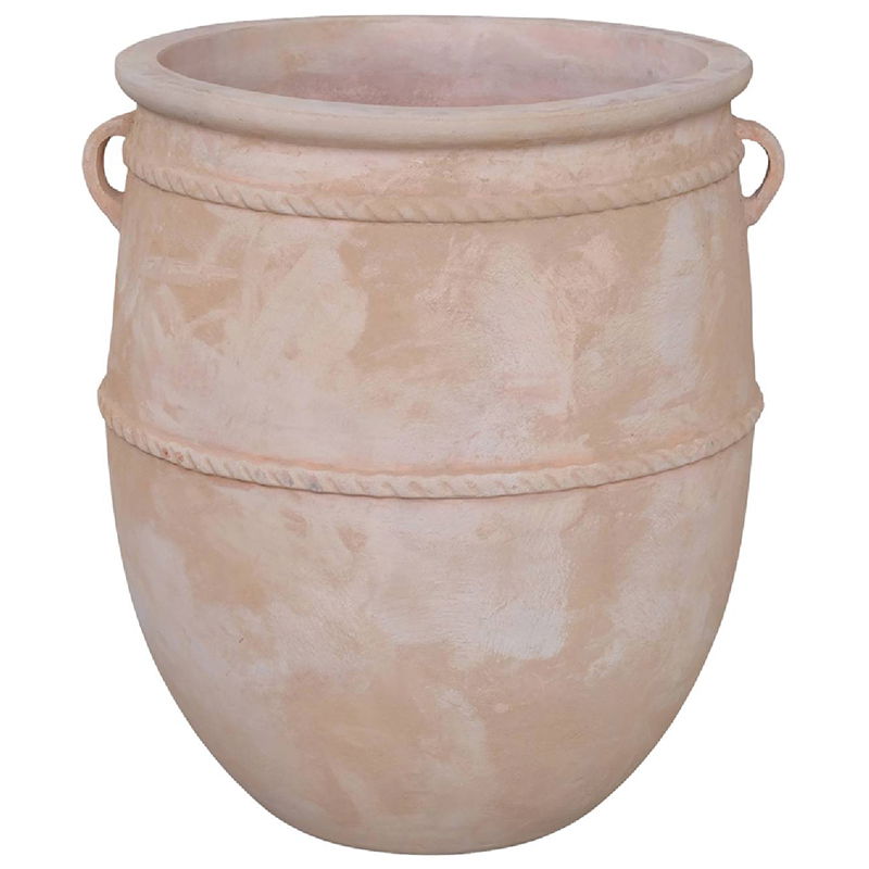 Mooie grote bloempot van handgemaakt terracotta in een klassiek mediterraan design. Met een prachtige kruikvorm en een authentieke uitstraling. Een sfeervol pareltje voor in je interieur of tuin.