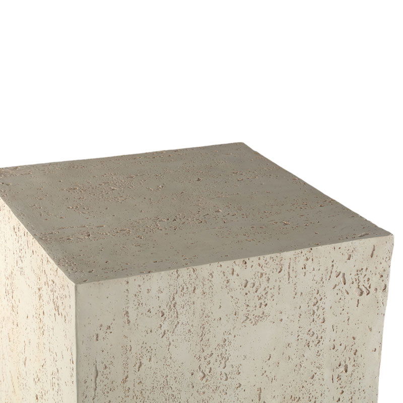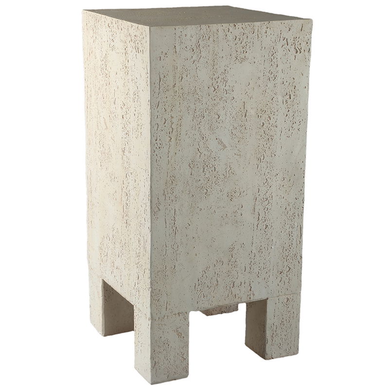 Prachtig plantentafeltje voor je allermooiste bloempot. Het ontwerp is van creme kleurig sterk MgO-kunststof dat voor een wat ruwer afwerking zorgt met een prachtige travertin uitstraling. De tafel heeft een modern hoekig design op kleine pootjes. De vormgeving en het materiaal maakt het een uniek object voor in je interieur.