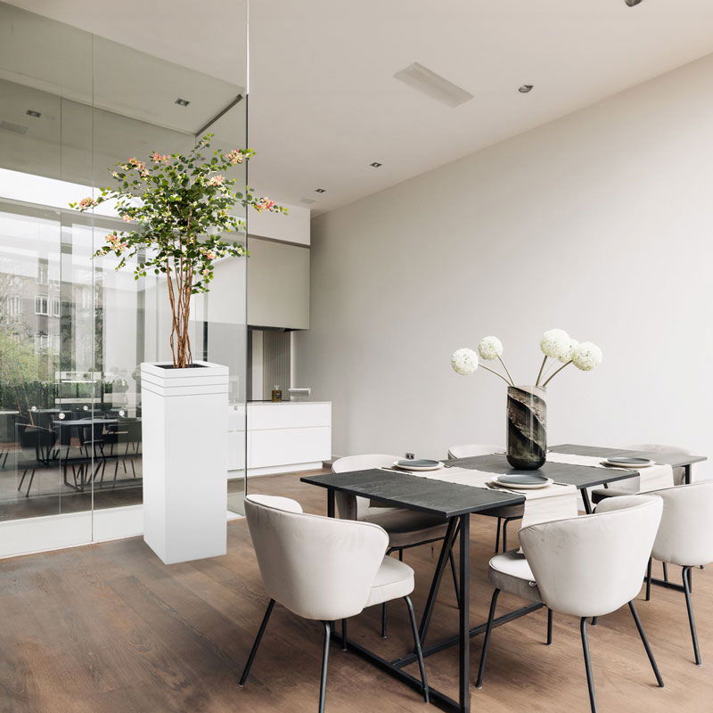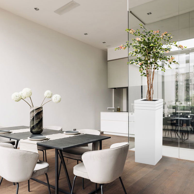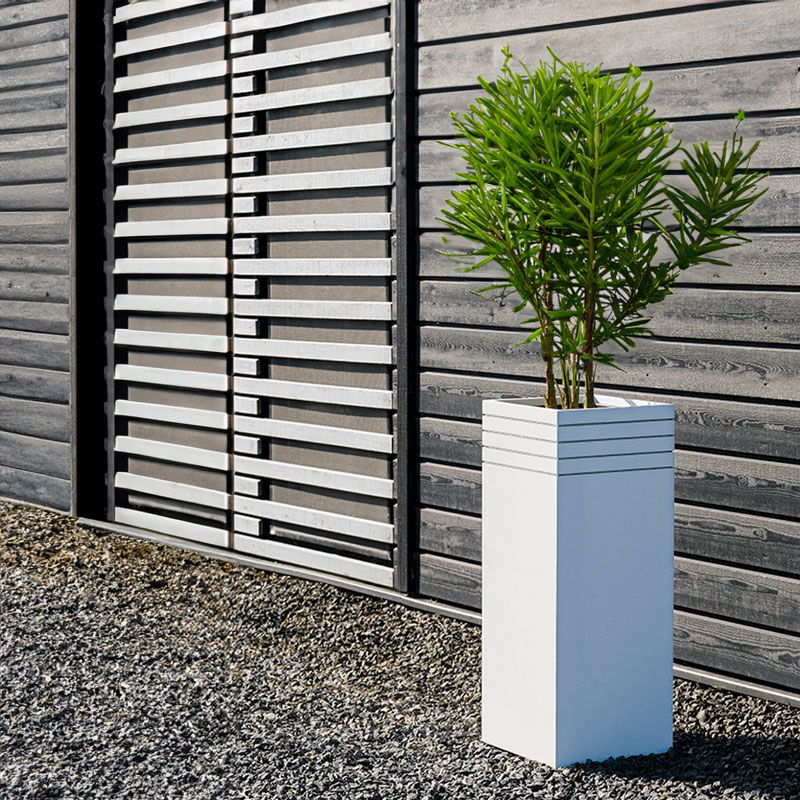 Strak en stoer in een klassiek ontwerp met de drie lijnen. Hoge plantenbak in helder wit. Licht in gewicht maar van hoogwaardige kwaliteit en zowel binnen als buiten te gebruiken.