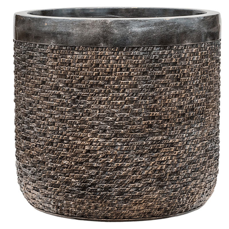 UNDA bronzen design bloempot met zwarte rand 40cm breed