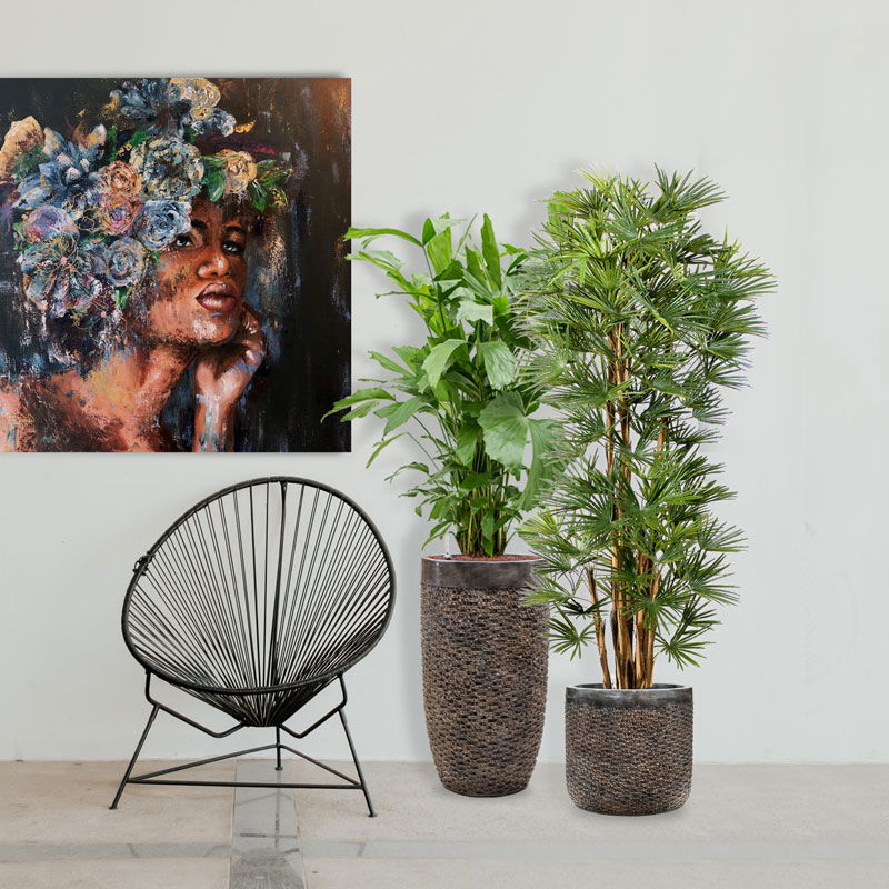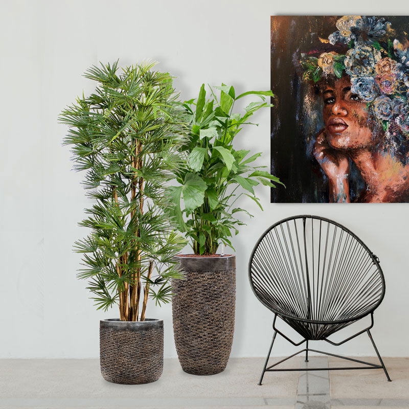 Bijna al onze potterie handgemaakt en daarom uniek in patroon, kleuring en niet 100% waterdicht. Een binnenvaas is ideaal om duurzaam te genieten van alle indoor geplaatste potterie. En om eenvoudig te wisselen van inhoud en styling.