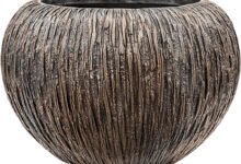 Elegant gevormde handgemaakte grote ronde bowl bloempot met een luxe, maar ook stoere en rustieke uitstraling. Een one of a kind high quality vaas van kunststofsteen. Prachtig met een bonsaiboom, droogboeket of zijde bloemen boeket.
