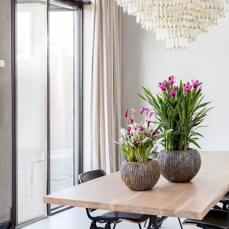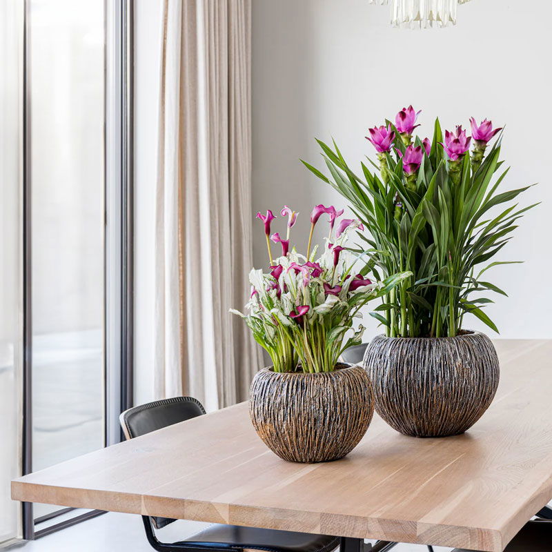 Bijna al onze potterie handgemaakt en daarom uniek in patroon, kleuring en niet 100% waterdicht. Een binnenvaas is ideaal om duurzaam te genieten van alle indoor geplaatste potterie. En om eenvoudig te wisselen van inhoud en styling.