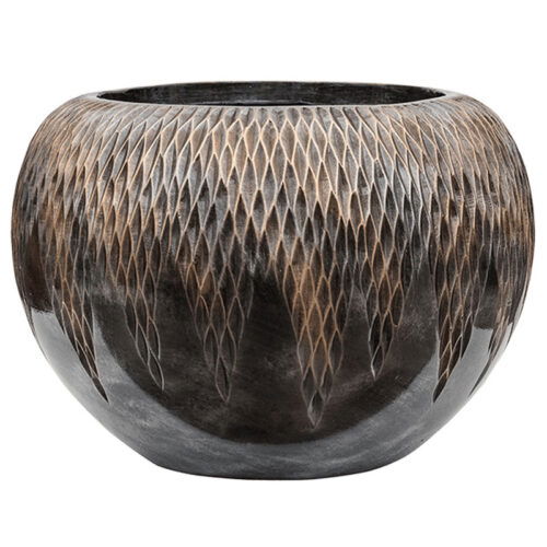 UNDA grote ronde bloempot tafel vaas zwart brons 39cm breed