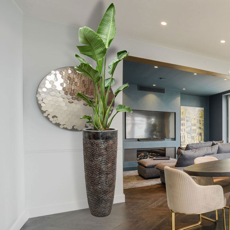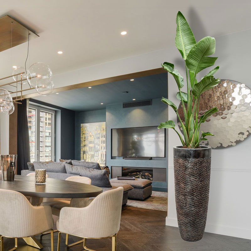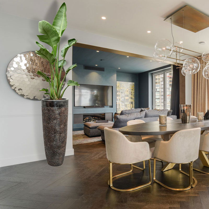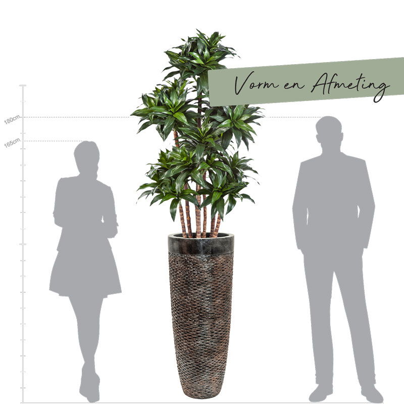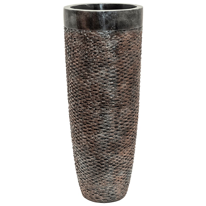 UNDA hoge design bloempot vaas brons met zwarte rand 90cm