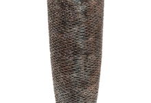 Elegant gevormde handgemaakte hoge vaas met een luxe, maar ook stoere en rustieke uitstraling. Een one of a kind high quality vaas van kunstofsteen. Een pareltje voor in je interieur.