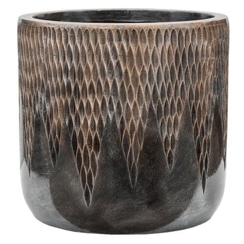 UNDA zwarte design bloempot met brons metal 40cm breed