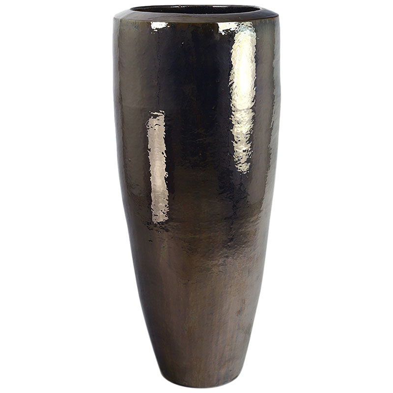Stijlvolle hoge bloempot van high quality handgemaakt keramiek in de bijzondere kleur metallic nachtblauw. One of a kind kleur die bij elk licht anders oogt. Van donkerblauw, zilver tot diep hoogglans zwart.
