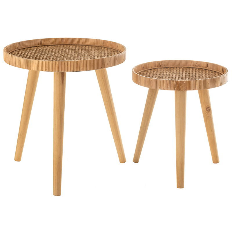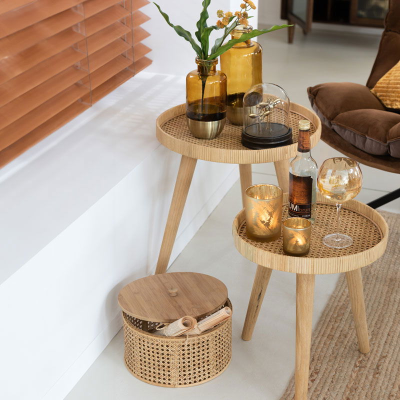 YARU rattan bijzettafel set plantentafeltjes 50cm & 60cm breed
