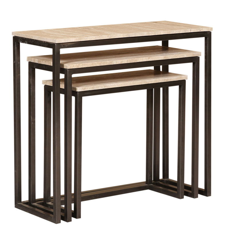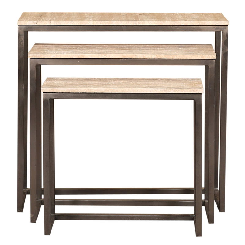 ZOAH travertin sidetables bijzettafels zwart stalen poten 70cm breed
