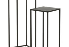 Fijne set van twee hoge metalen zuilen in mat zwart. In verschillende hoogtes voor een visueel stijlvol effect. Het ontwerp is verfijnd en open met een strak industriële look. Geef je bloempotten de zichtbare en stralende plek die ze verdienen.