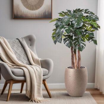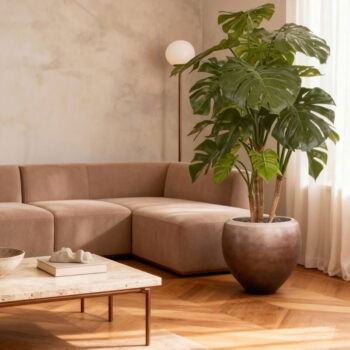 SOORTPrachtige hoge Monstera op stam met volle kruin. Niet van echt te onderscheiden high quality kunstplant. De charme van een grote kamerplant zonder de zorgen.