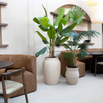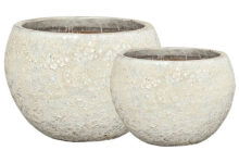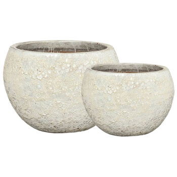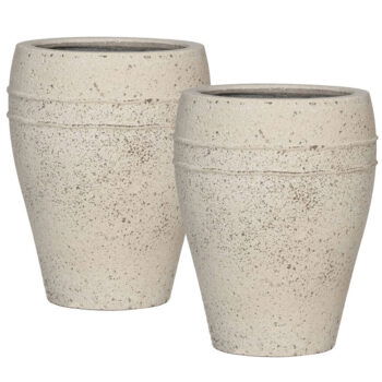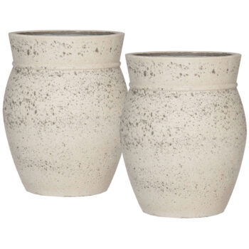 Afmetingen: D58 H40 en D42 H30 Kleur: Lichtgrijs Aantal: 2 stuks Artikelnummer: 716107 Gebruik: Outdoor, voor gebruik binnen kunt u een waterdichte binnenvaas bijbestellen via deze link Bijna al onze potterie handgemaakt en daarom uniek in patroon, kleuring en niet 100% waterdicht. Een binnenvaas is ideaal om duurzaam te genieten van alle indoor geplaatste potterie. En om eenvoudig te wisselen van inhoud en styling.