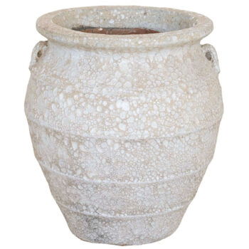 Afmeting: 38 x 38 x 47 cm Opening: 30 cm Diepte: 46 cm Kleur: Kalk wit Aantal: 2 stuks Artikelnummer: 3283 Gebruik: outdoor, voor gebruik indoor kunt u een binnenvaas bijbestellen via deze link. Bijna al onze potterie handgemaakt en daarom uniek in patroon, kleuring en niet 100% waterdicht. Een binnenvaas is ideaal om duurzaam te genieten van alle indoor geplaatste potterie. En om eenvoudig te wisselen van inhoud en styling.