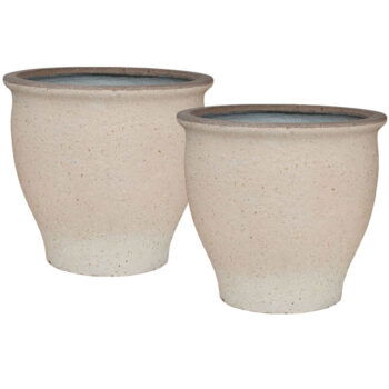 Afmeting: 40 x 40 x 33 cm Opening: 33 cm Diepte: 32 cm Kleur: Zand beige Aantal: 2 stuks Artikelnummer: 3278 Gebruik: outdoor, voor gebruik indoor kunt u een binnenvaas bijbestellen via deze link. Bijna al onze potterie handgemaakt en daarom uniek in patroon, kleuring en niet 100% waterdicht. Een binnenvaas is ideaal om duurzaam te genieten van alle indoor geplaatste potterie. En om eenvoudig te wisselen van inhoud en styling.