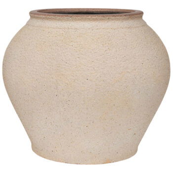 Afmeting: 70 x 70 x 58 cm Opening: 40 cm Diepte: 57 cm Kleur: Zand beige Aantal: 1 stuk Artikelnummer: 3320 Gebruik: outdoor, voor gebruik indoor kunt u een binnenvaas bijbestellen via deze link. Bijna al onze potterie handgemaakt en daarom uniek in patroon, kleuring en niet 100% waterdicht. Een binnenvaas is ideaal om duurzaam te genieten van alle indoor geplaatste potterie. En om eenvoudig te wisselen van inhoud en styling.
